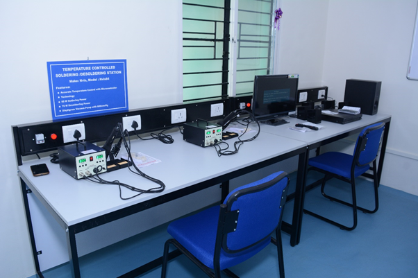 In the lab, students learn the fundamental concepts of electronics and electronic circuitry. They gain knowledge about electronic components, their functions, and how they are connected in circuits. Students practice soldering techniques and learn to assemble and solder electronic components on breadboards or printed circuit boards (PCBs). They also gain proficiency in reading circuit diagrams and schematics, understanding electronic symbols, and identifying components.