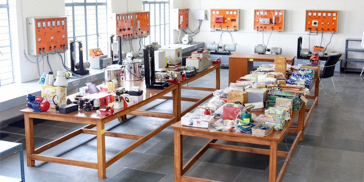 The ITI Electrician trade lab is equipped with a wide range of electrical tools, instruments, and components necessary for electrical work. These may include wire strippers, pliers, screwdrivers, multimeters, voltage testers, circuit breakers, switches, sockets, conduit pipes, and electrical panels. The lab may also have workbenches, electrical boards, and mock-up installations to replicate different types of electrical setups.